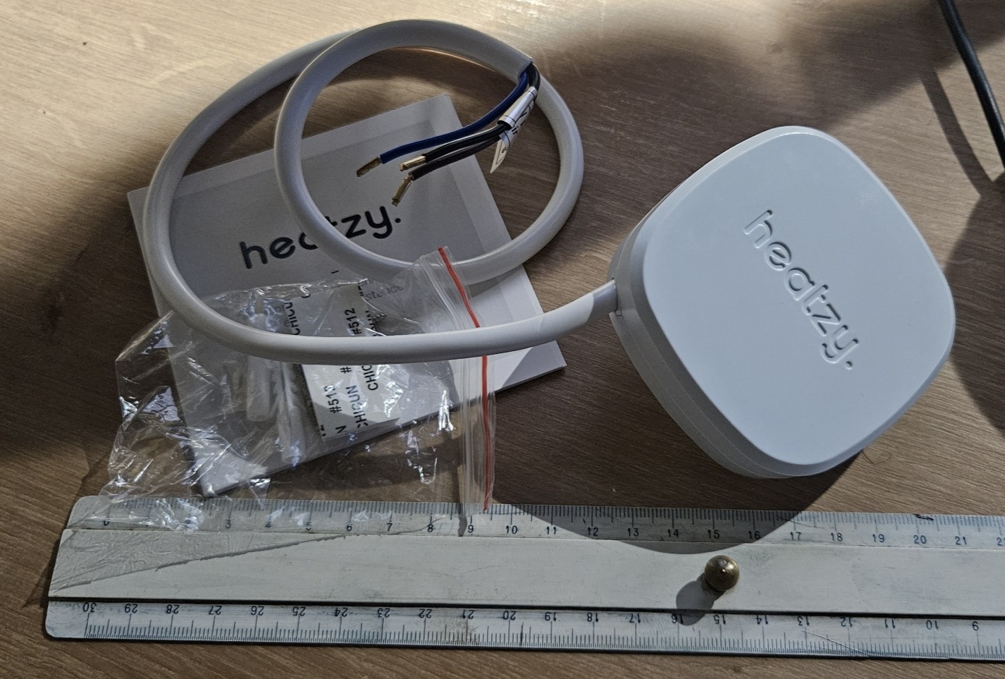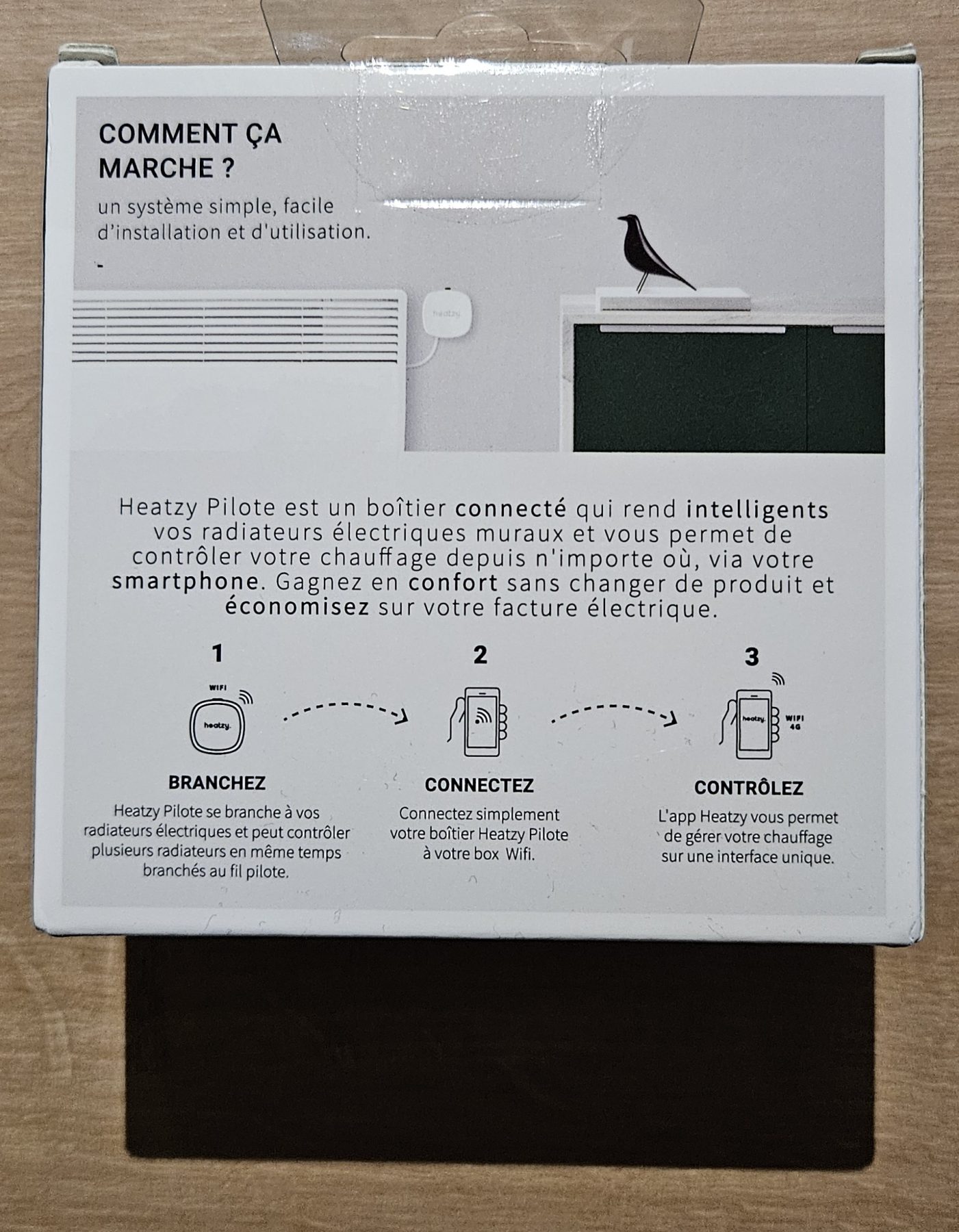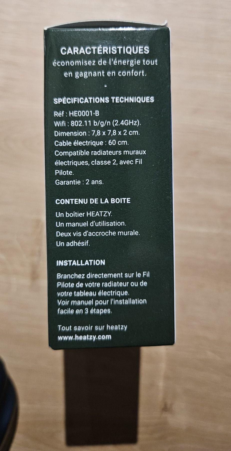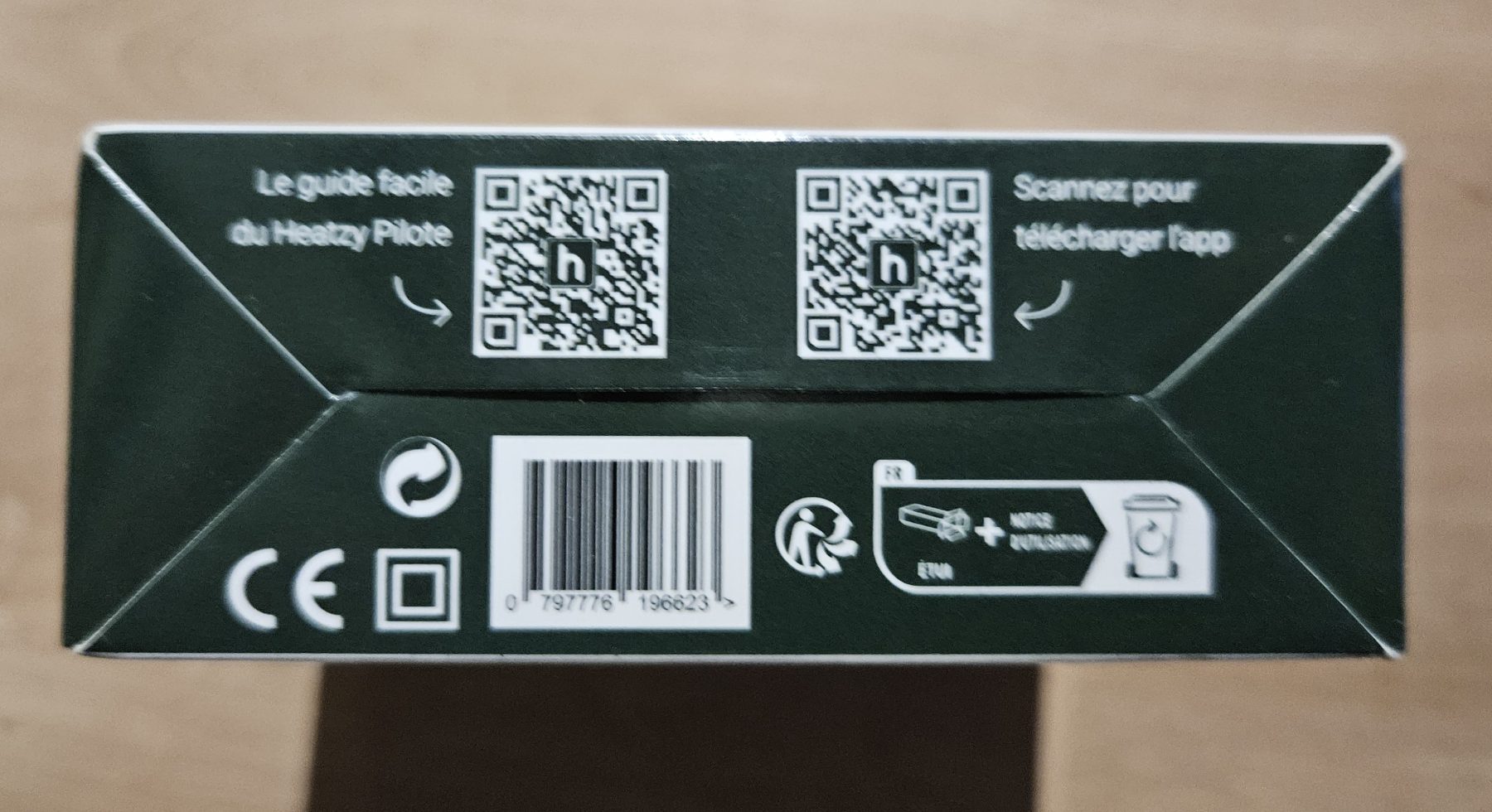 Nothing special regarding the module box. You can’t miss the QR codes linking to the documentation and the app to download, which is required to create a Heatzy account and configure the module (detection and association with home Wi-Fi for data transmission).
