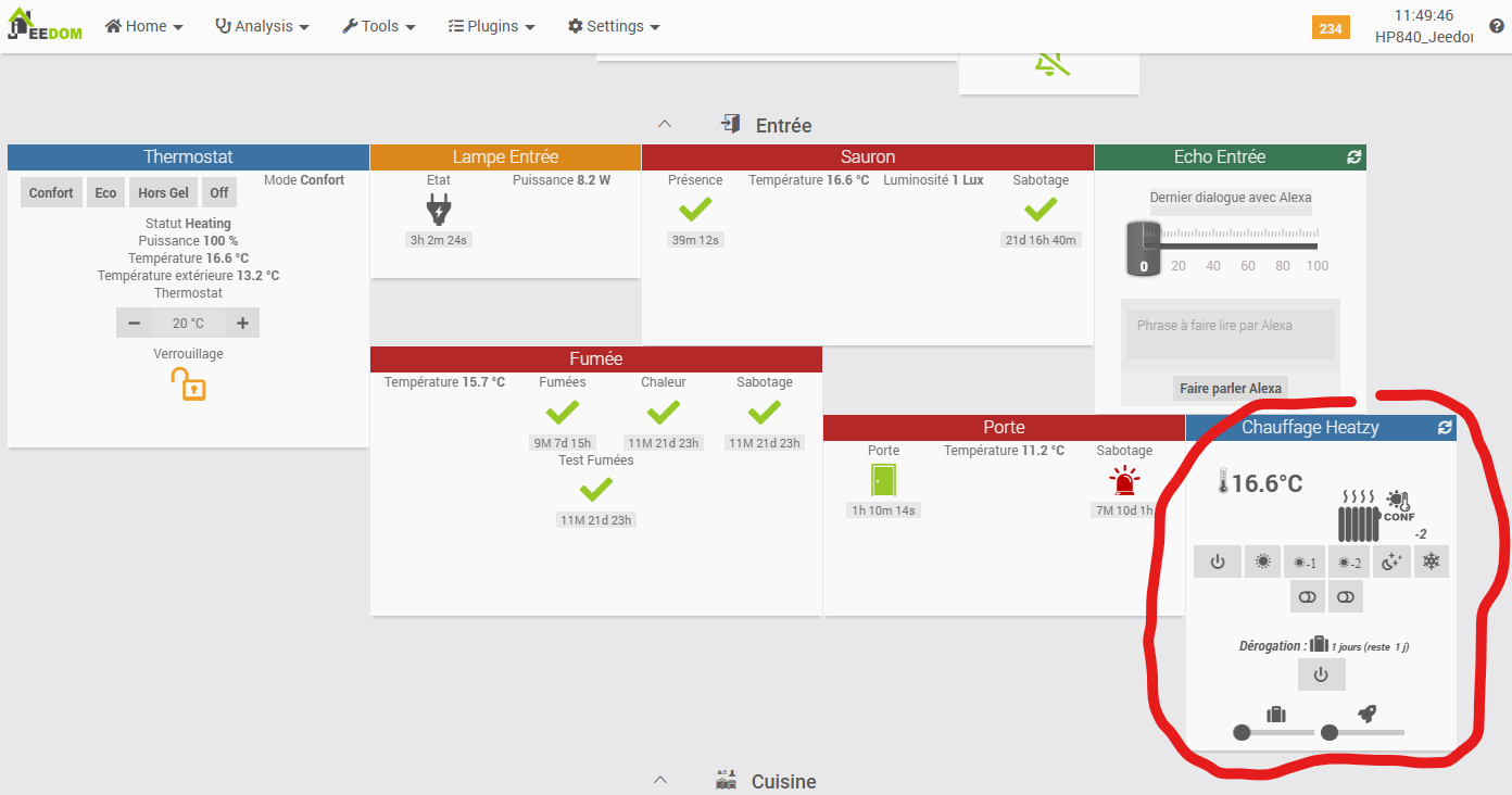- Observations regarding the Jeedom plugin widget: nothing that shouldn’t be easily fixed (but I did not try to submit a patch).