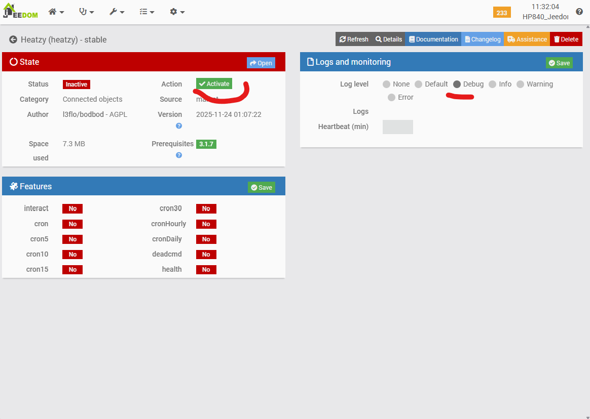 1. Specific findings on the Heatzy module & plugin