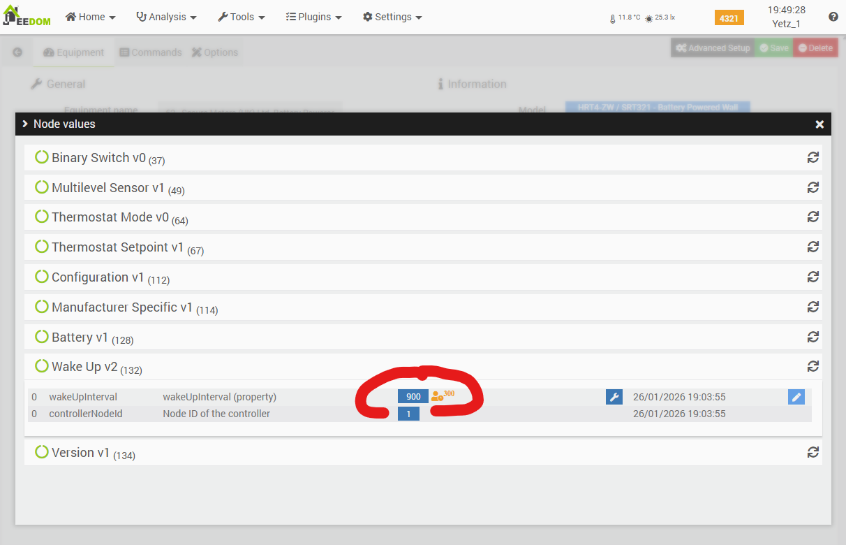 A minor observation: when the setpoint is changed on the SRT, it instantly wakes the module, and Jeedom retrieves the updated value immediately. Consequently, scenario #2 triggers right away and updates the Jeedom Thermostat setpoint, which then adjusts the room temperature via the radiator it controls. Conversely, when the setpoint is updated via the Jeedom thermostat, the temperature displayed on the SRT321 will only refresh during the module’s next scheduled wake-up, as it is battery-powered and therefore not permanently connected to the Z-Wave network.