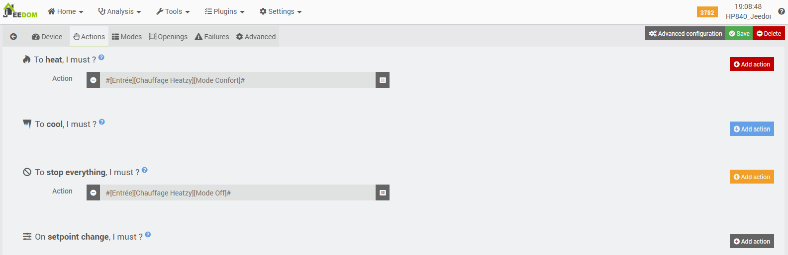 - The other does the reverse to report any change made on the Jeedom thermostat to the SRT (via web dashboard or mobile app).