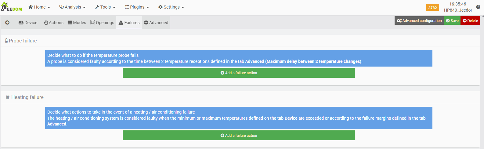 - We have also noted recurring warnings and errors in the logs. While this might not seem problematic, how can we be certain that these errors haven’t impacted the Thermostat plugin’s performance? In the case of simple periodic “refreshes,” it is not very serious; however, without error recovery coded into the module (and there appears to be none), certain commands may fail to be sent by Jeedom during periods of service or connection unavailability.
