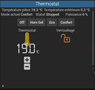 At this stage, we have successfully integrated a Heatzy pilot wire module onto an old radiator that was incompatible with the Qubino module. We integrated it into Jeedom via a manufacturer-specific plugin, then incorporated it into the generic Thermostat plugin. Finally, as the icing on the cake, we enabled interaction with a physical thermostat for greater day-to-day convenience.