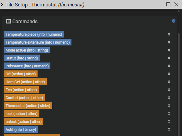 A quick word on its widget, should you wish to activate it: it is quite basic and would require some customization to improve its appearance (using the “PimpMyJeedom” plugin, for example). In my case, I prefer not to display it as it isn’t necessary. Within Jeedom, temperature adjustments will always be made via the Thermostat plugin widget and automatically synchronized to the SRT321 via a scenario. Similarly, any setpoint change made using the SRT321 dial will be detected and then updated on the Thermostat plugin’s setpoint through the same scenario.
